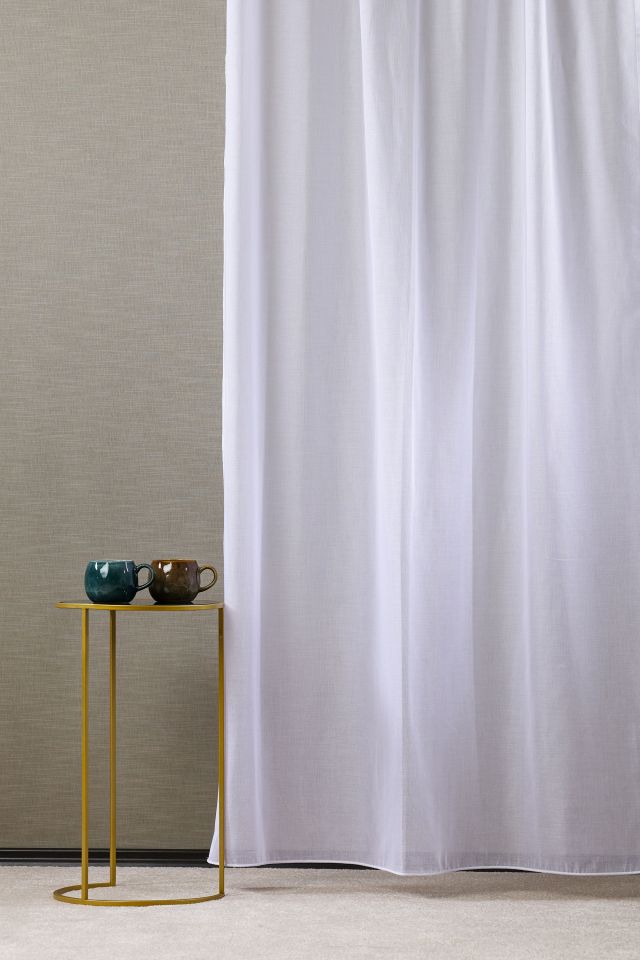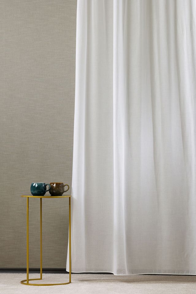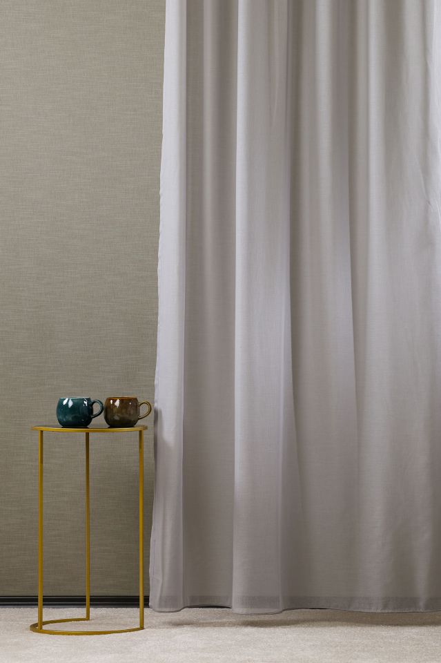 Természetes hatást keltő anyag, struktúrált textúrával. Az ilyen függönyök finoman szűrik a napfényt, de mégis biztosítják a szükséges intimitást. Az egyik legnépszerűbb fényáteresztő függöny anyag.